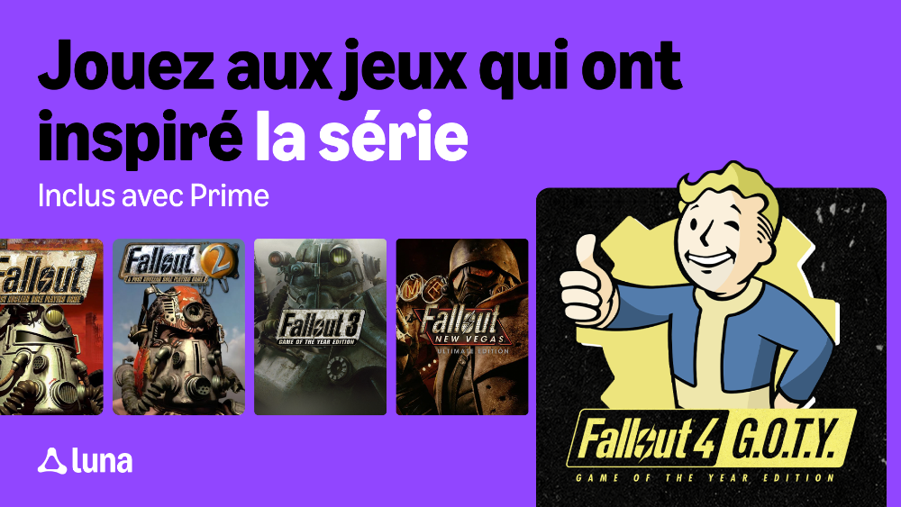 Luna propose plusieurs titres supplémentaires aux membres Prime tout au long du mois de novembre, les premiers jeux étant disponibles dès aujourd’hui ! Ces titres rejoignent une librairie de plus de 50 jeux disponible pour tous les adhérents Prime. La sélection de ce mois-ci comprend Fallout et son histoire post-apocalyptique, mais aussi Bō: Path of the Teal Lotus et son monde mystérieux de mythes et légendes. Les joueurs sont invités à se rendre régulièrement sur luna.amazon.com pour découvrir l’intégralité de la bibliothèque disponible !
