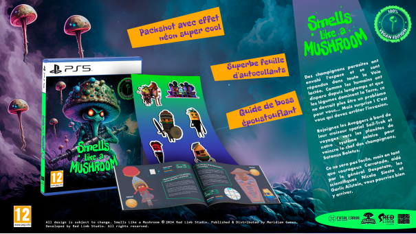 Développé par Red Limb Studio, Smells like a Mushroom – 100% Vegan Edition est distribué en France par Microids Distribution France.