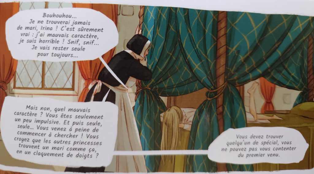 Les années passent, la jeune fille grandit et forge son caractère. Bien loin ds préceptes de son rang, elle prend un malin plaisir à rendre chèvre les gouvernantes et le personnel dédié à sa personne. Personne ne parvient à lui faire entendre raison ! Ce qui ne va pas s’arranger lorsqu’elle apprend qu’elle va devoir se marier. Alors que les réjouissances son de mise, la déconvenue pointe le bout de son nez lors de la présentation de nombreux prétendants qui n’apprécient guère les manières de la demoiselle. On pourrait alors penser qu’elle finira mariée de force, mais sa rencontre avec Rodrigue pourrait tout changer…