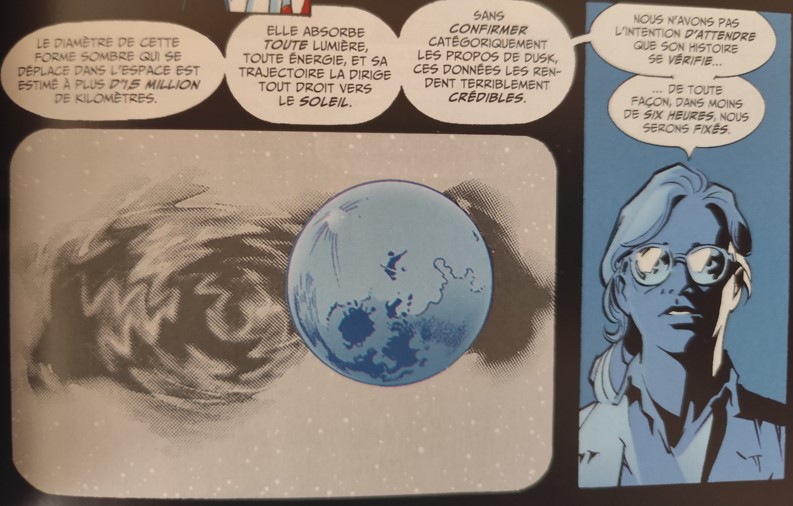Après une courte introduction qui rêve sur la genèse de The Final Fight. Et l’importance du Green lantern Hal Jordan, le récit débute par un prologue qui nous ramène aux origines de cette mystérieuse menace dont Starfire et son peuple auront fait les frais avant qu’elle n’approche la terre. Après un accueil plutôt musclé pour Dusk, nous apprenons que le solarivore est en marche. Une menace que la ligue pourra exterminer? Où allons-nous assister aux dernières heures de la planète bleue?