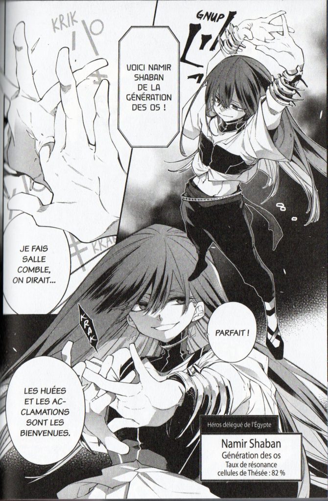 Se déroulant sous l’œil attentif de l’IA Olivia, le premier duel a opposé Albie « Jabberwocki » Hiddelston représentant le Royaume-Uni en tant que héros délégué de la région atlantique A face à Hasuichi Nishizino qui en plus de représenter l’Asie de l’est C en tant que héros délégué du Japon n’est autre que le fils du Premier ministre japonais… Bien plus que de simple participants, les héros des différentes nations disposent de « pouvoirs » que l’on découvre à travers les cellules de Thésée qui permettent également de mesurer leur force. On pourrait tout simplement penser à court-circuiter Gaïa, mais cette dernière est ici représentée par un simple hologramme capable de couper l’oxygène du monde d’un simple battement de cils.