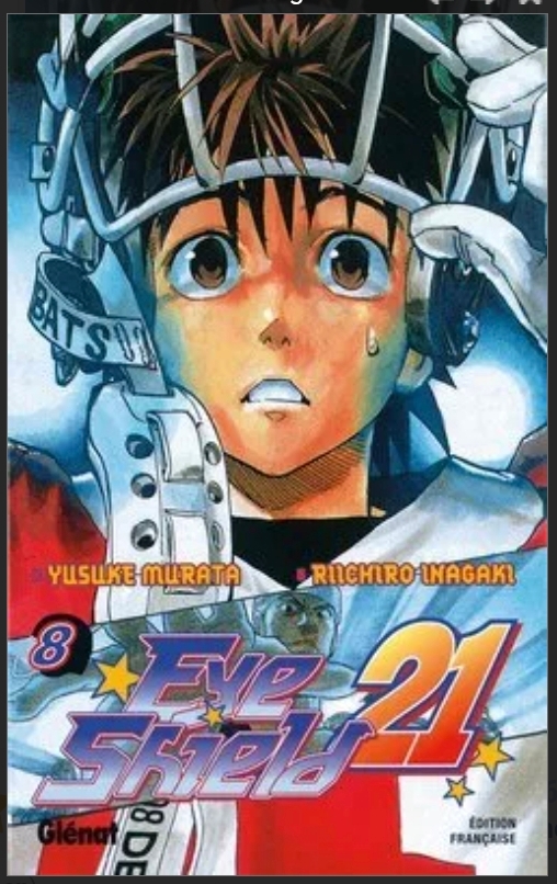 L’édition française du manga Eyeshield 21, scénarisé par Riichirô Inagaki et dessiné par Yûsuke Murata, a été publiée intégralement par Glénat Manga à partir de mars 2005. La série complète compte 37 tomes au format classique (environ 192 pages par volume, sens de lecture japonais), terminée depuis plusieurs années. En 2026, à l’occasion des 21 ans de sa publication en France, Glénat a célébré l’événement avec une édition anniversaire du tome 1 et la sortie du livre-hommage Brain x Brave (contenant un one-shot inédit de 55 pages).