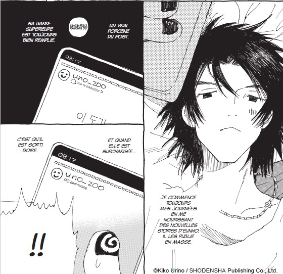 Tenma, nail artist tokyoïte, commence toujours sa journée en vérifiant les réseaux sociaux de Uno, un jeune coréen qui met toute sa vie en ligne. Seulement, lorsque ce dernier annonce avoir une petite amie, Tenma a du mal à encaisser le choc. Lui qui suivait tous ses posts depuis cinq années et croyait être la personne qui le connaissait le mieux…L’autrice de De neiges et de flammes s’attaque à une histoire résolument moderne, en pleins réseaux sociaux et technologies d’influence.