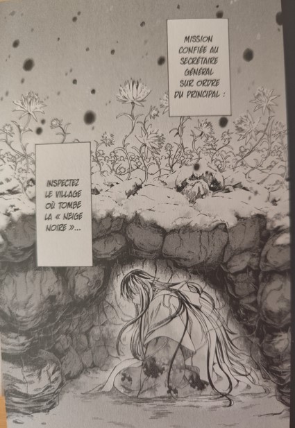 Tout débute dans le Japon de l’ère Taishô, en 1910 sur une île militarisée ne figurant sur aucune carte. Il s’agit d’une académie dont les membres sont chargés d’étudier des phénomènes paranormaux. Parmi eux, le jeune Kodô Iwamoto est envoyé dans un village frappé par une mystérieuse « neige noire » qui terrifie les habitants. Quel maléfice va-t-il découvrir une fois sur place?