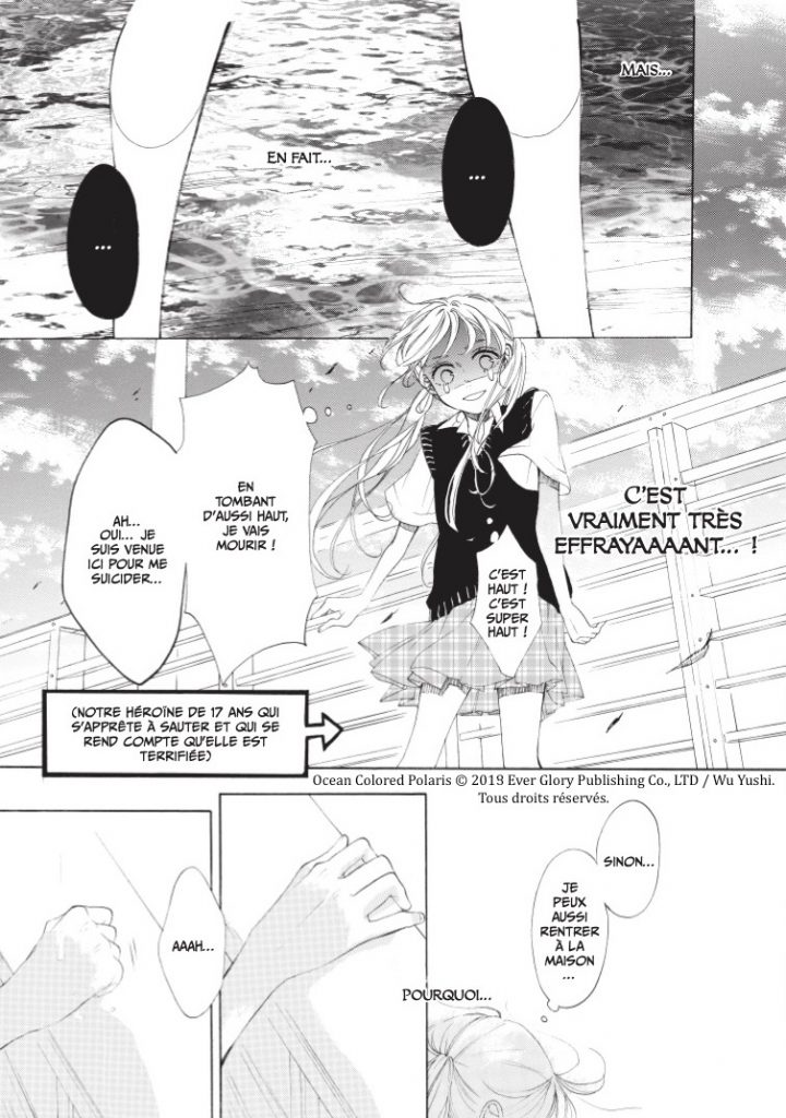 Ce one-shot raconte l’histoire d’une jeune fille souhaitant mettre fin à ses jours, mais contre toute attente, elle fait la rencontre d’une sirène, ce qui pourrait bien changer ses plans.
