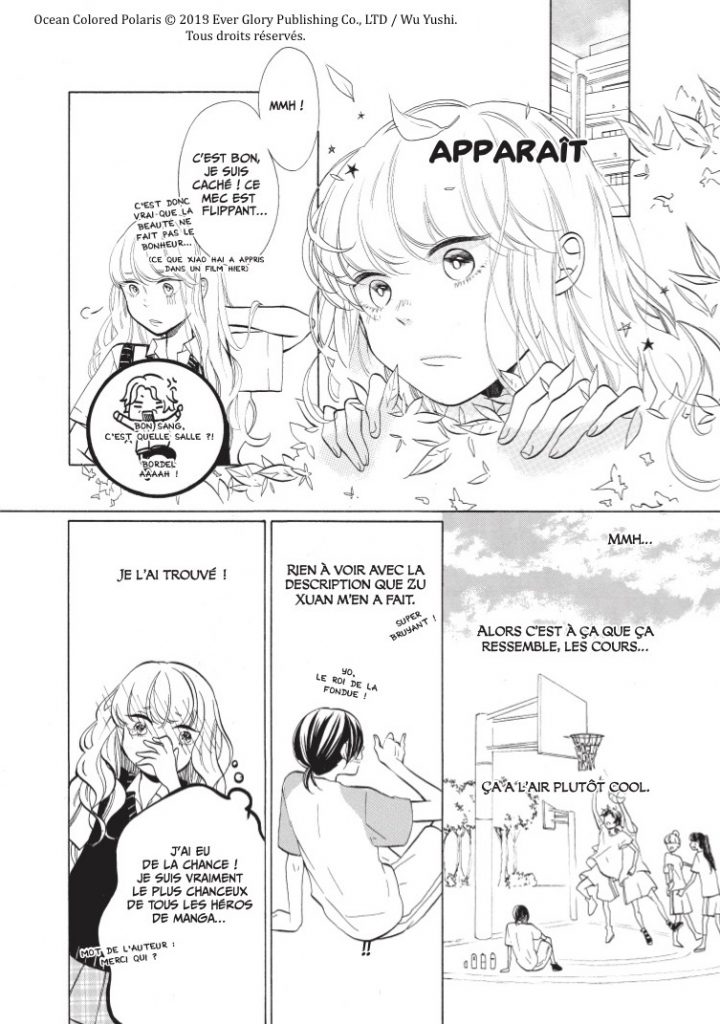 Vous êtes fan de romance et de drames ? Ocean Colored Polaris est un Oneshot fait pour vous ! Créé par Wu Yu Shi et traduit par Sarah Grassart, ce manga d’origine taïwanaise, publié le 29 Janvier 2021 aux éditions Chatochato, vous fera voyager à travers une palette d’émotions tout en vous invitant à réfléchir sur de nombreux aspects de la vie.