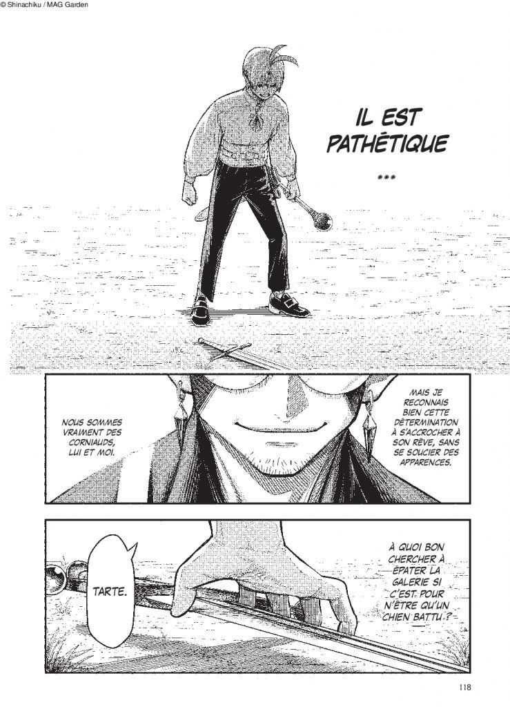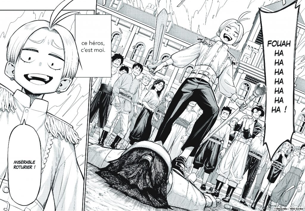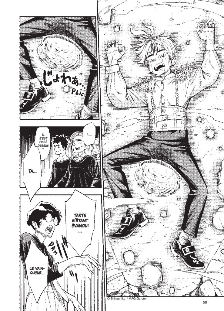 Dès les premières pages, Shinachiku brise les codes en nous présentant un héros détestable qui au final n’en est pas un. Après s’être fait humilier publiquement, Tarte Aupoir Croqmonsieur débute alors son voyage initiatique afin de maîtriser l’art du combat, mais aussi de vraies valeurs. L’humour est omniprésent tout comme les scènes de combat.