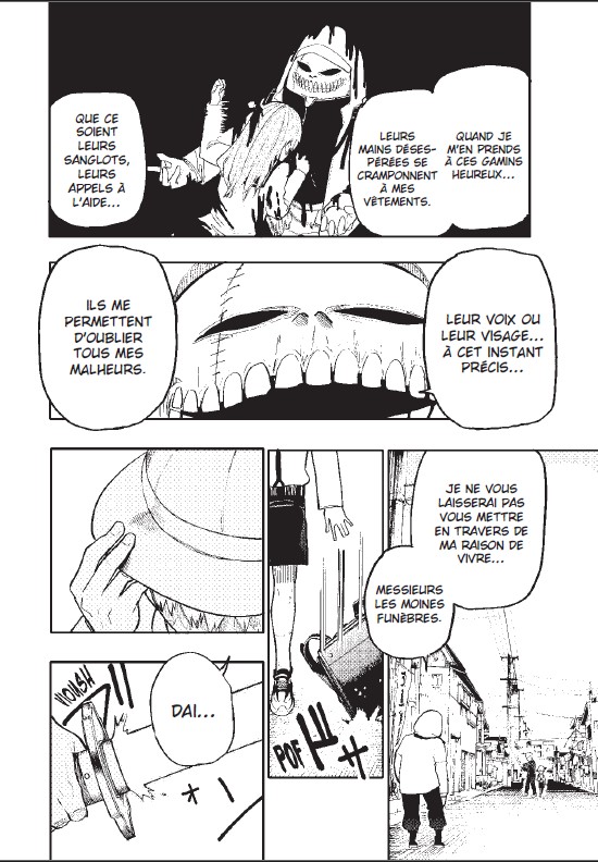 Tout débute au cimetière Okanami où un humain a été vidé de toute son énergie vitale. L’occasion de découvrir Rota et Hiromu, deux fossoyeurs chargés de renvoyer ces entités dans la tombe. Un duo pour le moins atypique, ne serait-ce que par l’écart d’âge entre les deux chasseurs. Mais aussi leur manière de se tacler mutuellement en permanence.