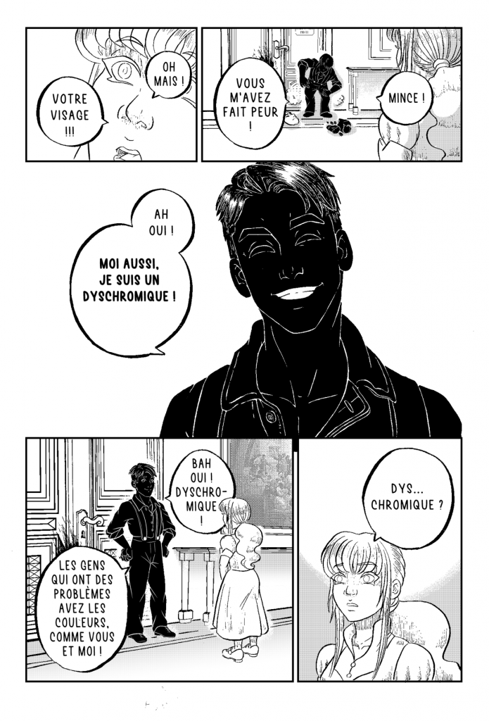 Enfant maudit, Opaline souffre est une dyschromie.L’absence de couleurs l’empêche d’être vue par le commun des mortels. Mais elle a trouvé refuge après avoir été recueillie par une bibliothécaire. Une rencontre avec l’un de ses semblables va cependant tout faire basculer. Parviendra-t-elle à trouver le remède qui lui permettrait de se fondre dans la masse ?