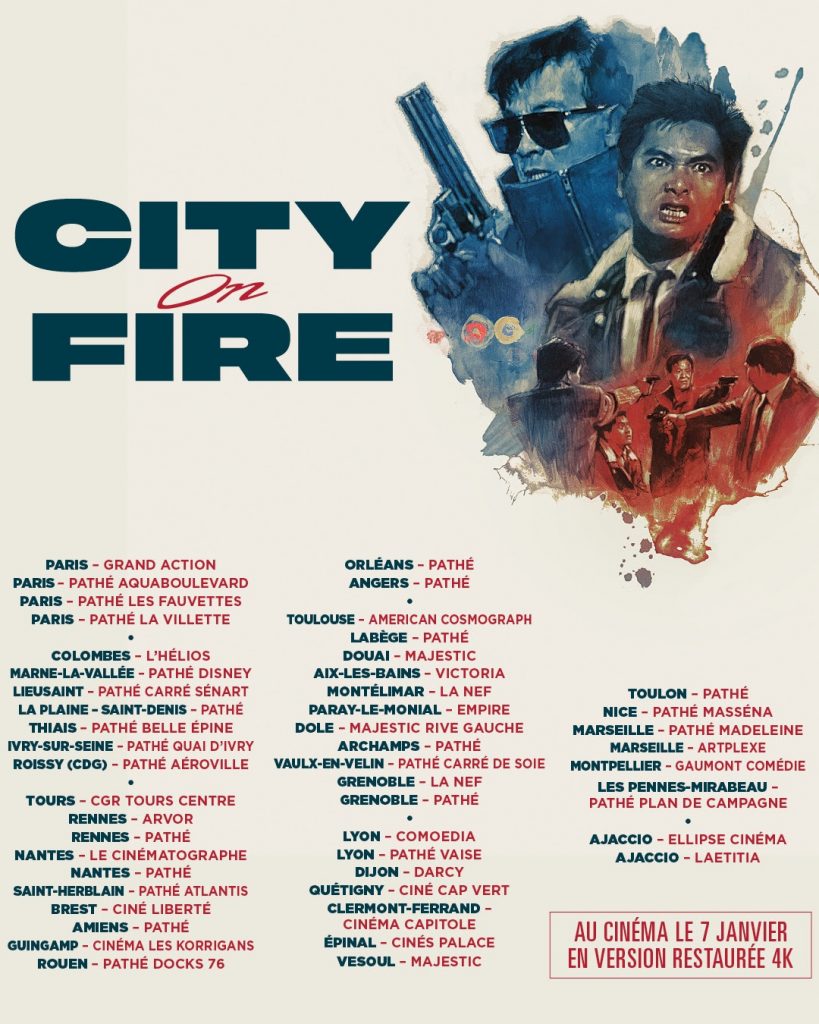 Après avoir inauguré ce programme avec À TOUTE ÉPREUVE (Hard Boiled), THE KILLER et la trilogie HISTOIRES DE FANTÔMES CHINOIS (actuellement au cinéma), voici le polar culte de Ringo Lam CITY ON FIRE dans une nouvelle copie restaurée qui va ravir les fans qui pourront (re)découvrir ce classique en salles dès aujourd’hui. Allez-vous craquer?