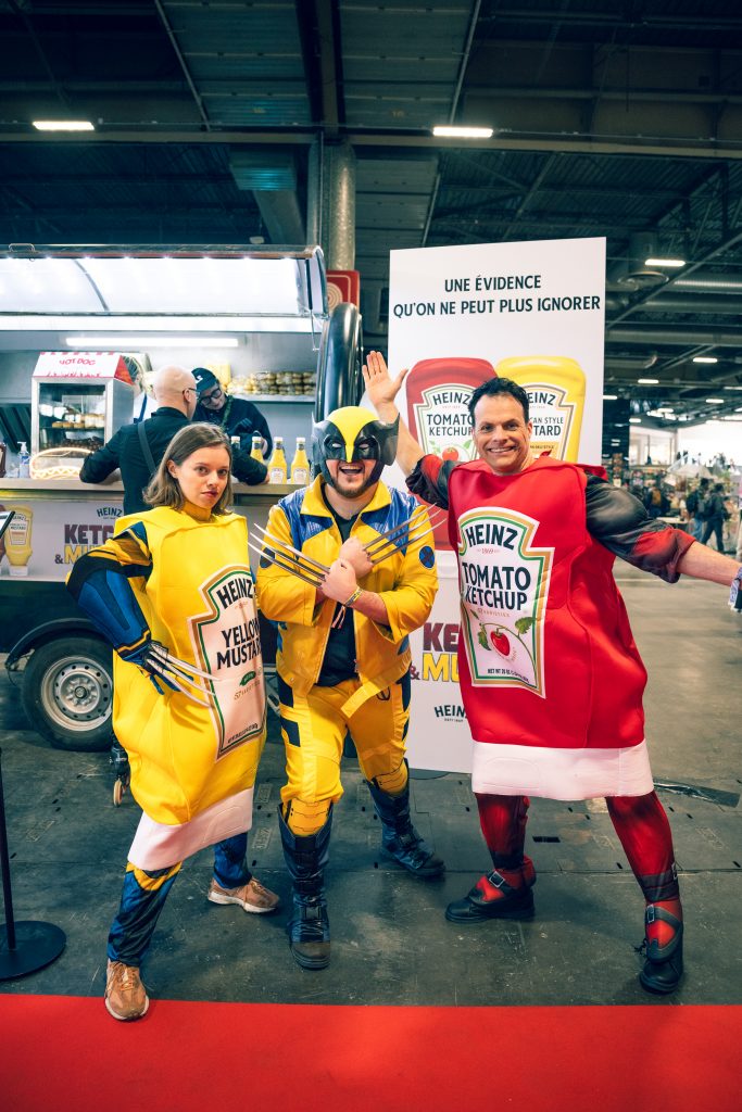 Partenaire officiel du film aux États-Unis, Heinz a investi le Comic Con France avec un food truck de hot-dogs aux couleurs de DEADPOOL & WOLVERINE. Après avoir dévoilé, lors de l’avant-première américaine, une version “ ketchup ” pour Deadpool et “ moutarde ” pour Wolverine, la marque a prolongé l’activation à Paris. Les personnages aux saveurs bien tranchées étaient également présents pour interagir avec le public et sont montés sur scène pendant le concours, apportant une touche décalée et savoureuse à l’événement.