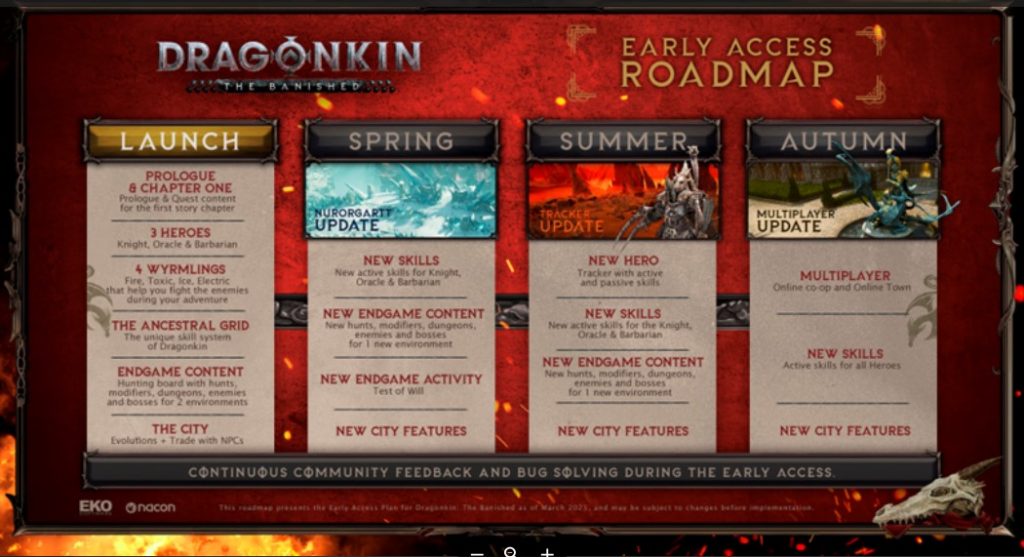 Le contenu du jeu sera enrichi par plusieurs mises à jour tout au long de l’accès anticipé qui apporteront des nouveautés variées : de nouvelles améliorations pour les héros et la Cité, des modes de jeu en endgame, des environnements et leurs lots d’ennemis. La co-op en ligne jusqu’à 4 joueurs sera ajoutée à l’automne 2025, permettant aux groupes d’amis d’affronter ensemble les Dragons Ancestraux, tout en partageant les services et bonus de leur Cité.
