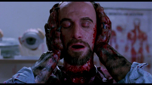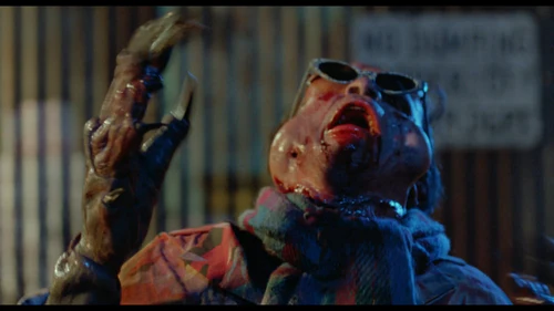 Notre ami va alors gagner la grande ville et croiser une pléthore de personnes représentatives de la société de l’époque, dont un SDF, un médecin jusqu’à la tête du pauvre toutou de ce dernier qui reste l’une des métamorphoses les plus marquantes. The Borrower est un film gore grand-guignolesque qui brille pour son aspect comédie noire au point de pouvoir siéger aux côtés des films de la Troma (c’est Toxic qui va être content). Un bis envoûtant qui nous ramène aux classiques de l’époque pour ntore plus grand plaisir. J’avais pour ma part découvert le film au vidéoclub avant de me procurer le DVD qui était la seule version du film existante dans nos contrées. Jusqu’à l’arrivée du Blu-ray des amis de Video Popcorn Éditions. Techniquement, que donne cette nouvelle version ?