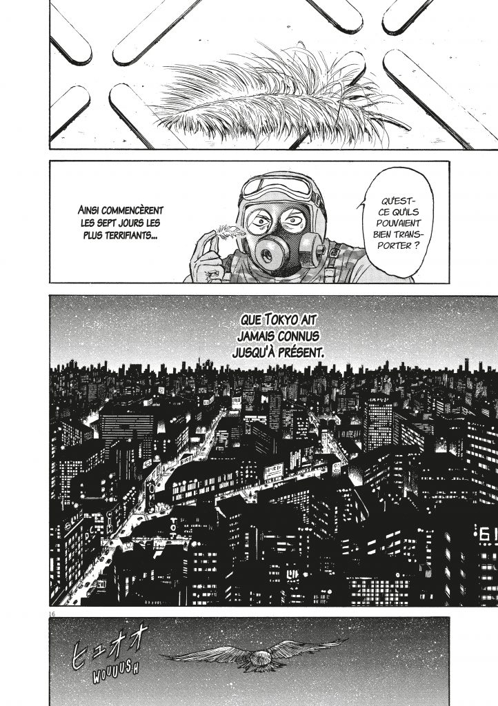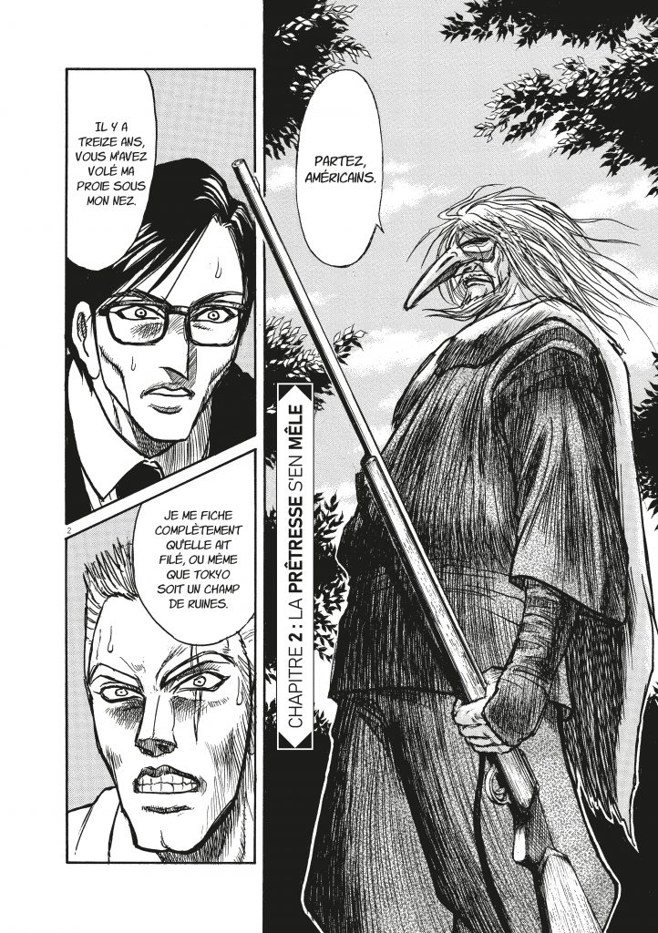 Un mystérieux oiseau s’échappe d’un porte-avions américain échoué dans la baie de Tokyo. Quiconque entre dans son champ de vision meurt instantanément.Alors que les morts s’accumulent dans la ville, l’armée fait appel à Uhei Somaguchi, un ancien chasseur, seul homme à avoir déjà blessé la créature. Accompagné de sa fille adoptive Rin, une jeune prêtresse aux dons surnaturels, il reprend les armes pour affronter cette menace venue d’ailleurs.Résumé, éditions Meian