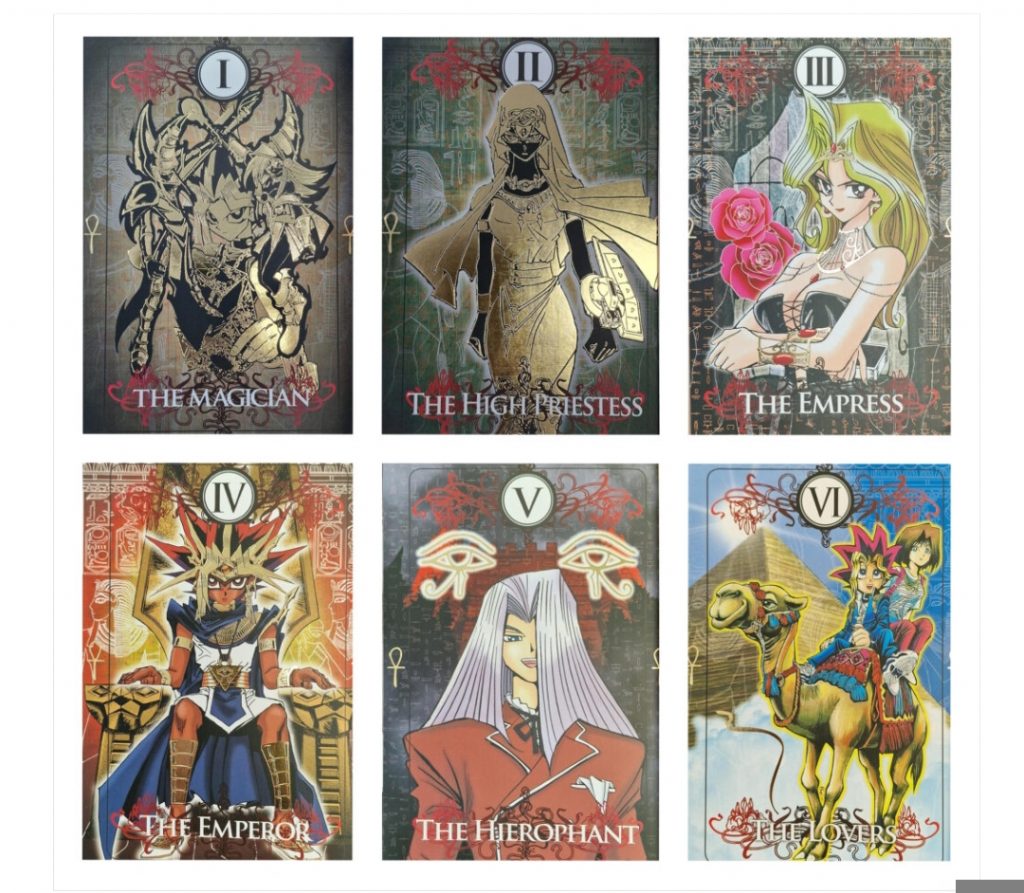 Chaque tome de Yu-Gi-Oh ! Edition Millénium comprendra ainsi une page cartonnée en couleur avec une illustration d’une arcane majeure du Tarot, liée à un personnage spécifique de la série ! Ces dernières auront également droit à un magnifique effet doré. On vous en montre quelques unes ici, mais les plus curieux d’entre vous peuvent évidemment tout retrouver en ligne si ils le souhaitent.