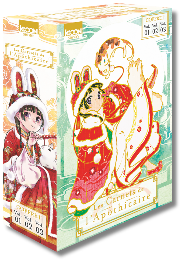 Un superbe coffret rassemblant les trois premiers tomes des Carnets de l’apothicaire pour faire découvrir les enquêtes de Mao Mao à ceux qui n’ont pas encore commencé la série !