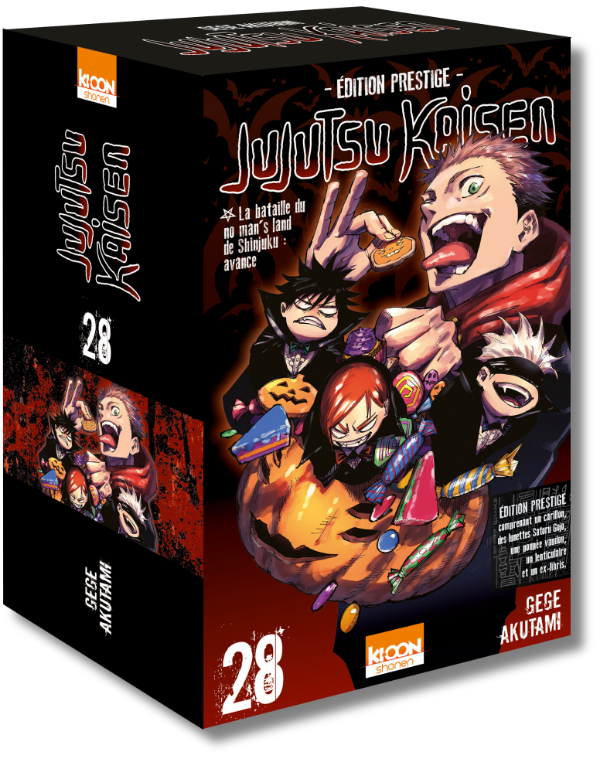 Des fans de jujutsu Kaisen ? Ne loupez pas ce coffret en édition limitée dans lequel vous trouverez un exemplaire du tome 28 de Jujutsu Kaisen avec une jaquette alternative réversible, mais aussi un carillon à l’effigie de Yuta, des lunettes de Gojo, une poupée vaudou, un lenticulaire ainsi qu’un superbe ex-libris affichant une belle illustration couleur !