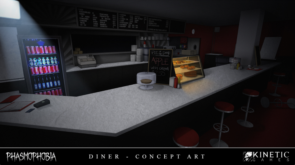 « Nell’s Diner, ainsi que les refontes de Farmhouse, sont tous au cœur de nos efforts pour amplifier l’horreur de Phasmophobia, et j’ai hâte que notre communauté en fasse l’expérience par elle-même », a déclaré Daniel Knight (Dknighter), directeur de Kinetic Games et développeur principal de Phasmophobia. « Notre incroyable équipe artistique a travaillé sans relâche sur le contenu à venir, et la carte Diner en particulier est l’une des cartes les plus uniques que nous ayons ajoutées à ce jour. Nous ne voulons rien gâcher, mais sachez simplement qu’il y a beaucoup de surprises à attendre.