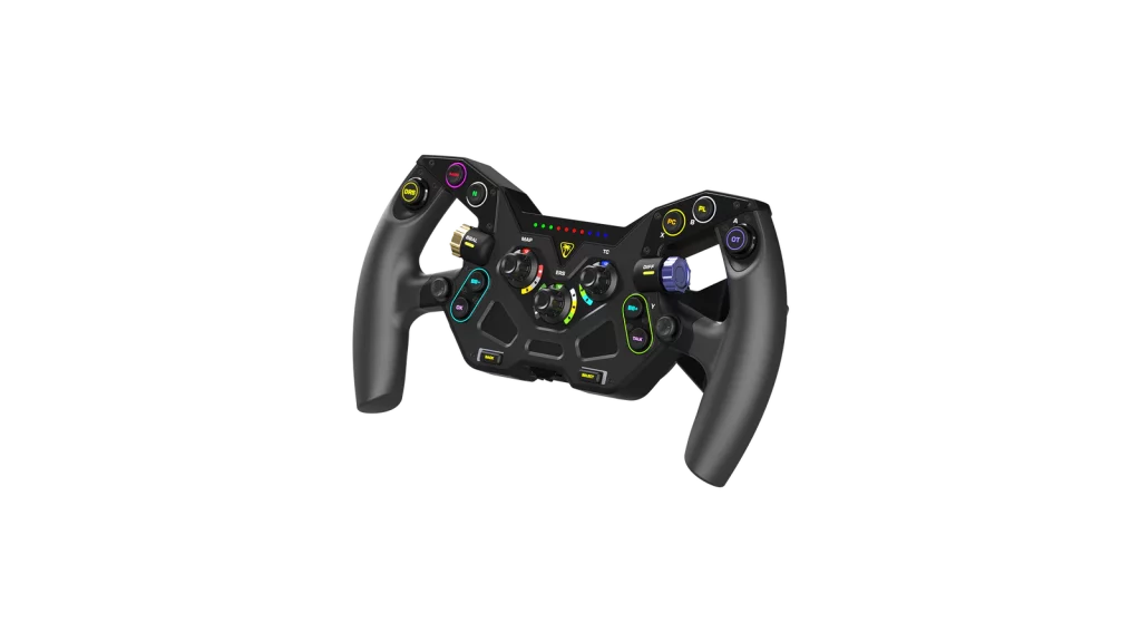 - 5 molettes rotatives permettent d’ajuster à la volée des paramètres essentiels comme l’équilibre des freins, le contrôle de traction ou la cartographie moteur. Sur Xbox, chaque molette gère deux fonctions ; sur PC, jusqu’à 12 entrées par molette sont possibles