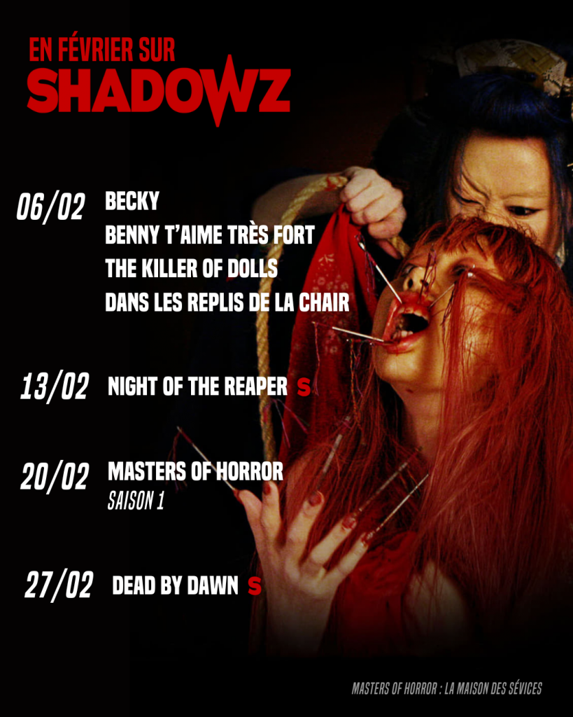De jolies pépites sont à découvrir dès ce week-end. Lancement de la programmation de février qui sera marqué avec l’arrivée de la première saison des Masters Of Horror dans deux semaines… Mais en attendant de pouvoir revenir sur cette anthologie culte, petit tour rapide des nouveautés de la semaine.