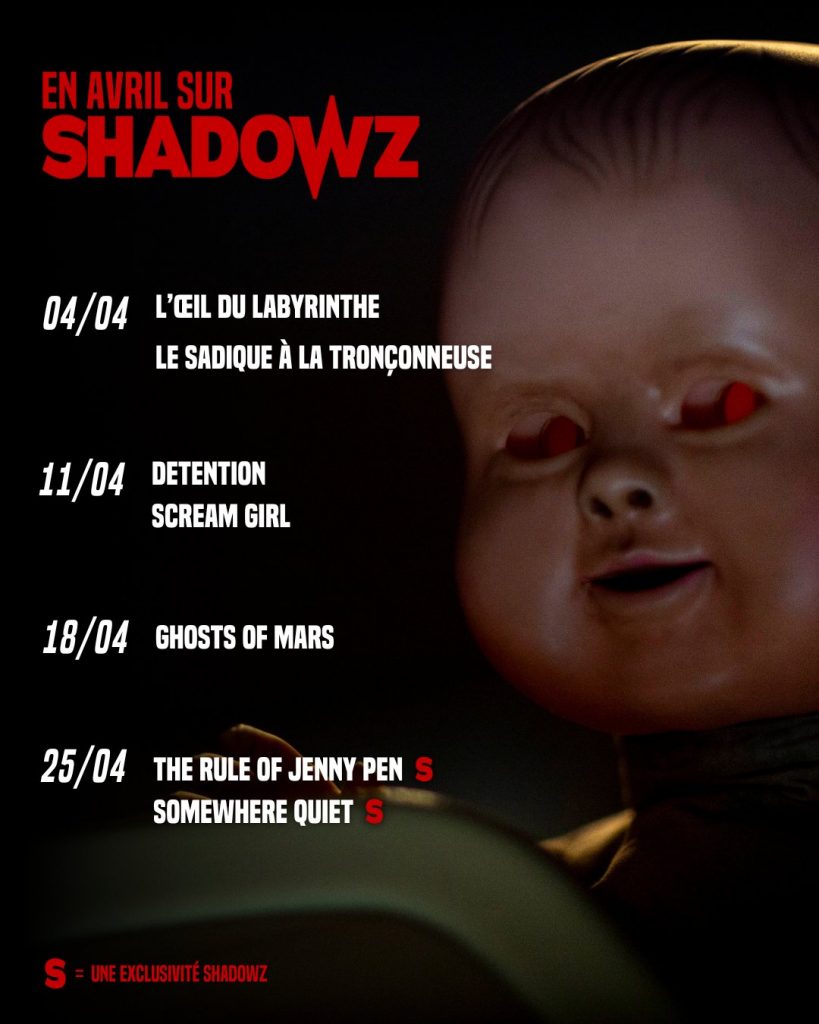 Pour rappel, Rats! et The Moor sont fraîchement arrivés sur la plateforme. Vous pouvez également retrouver la liste des films qui quitteront Shadowz le 21 avril ici.