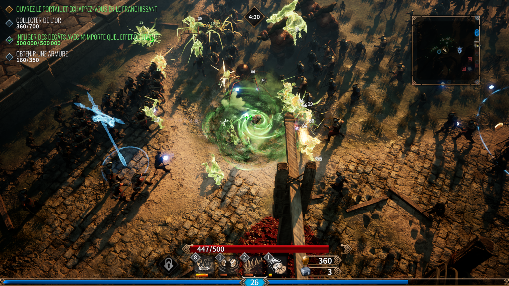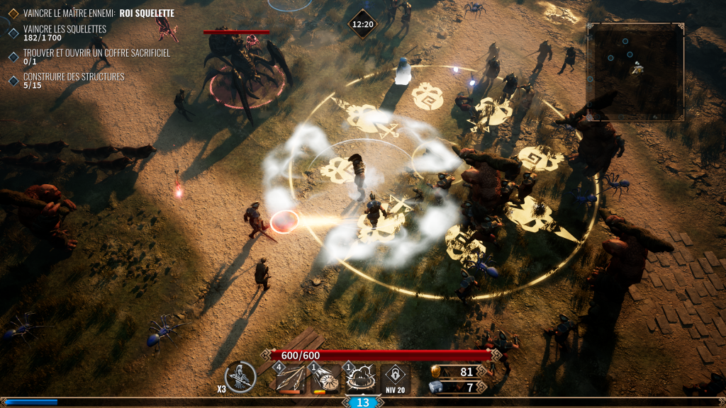 Le gameplay repose sur une boucle diablement addictive : exploration de zones ouvertes, récupération de ressources, renforcement de votre équipement et défense des points stratégiques. Les mécaniques de loot sont légères mais gratifiantes, incitant à varier les combinaisons d’armes et d’artefacts. Les contrôles du héros sont limpides, avec une prise en main quasi instantanée. On sent clairement l’influence des jeux du genre, mais créditée d’une patte tactique qui évite la redondance et d’un aspect technique pas déconnant.