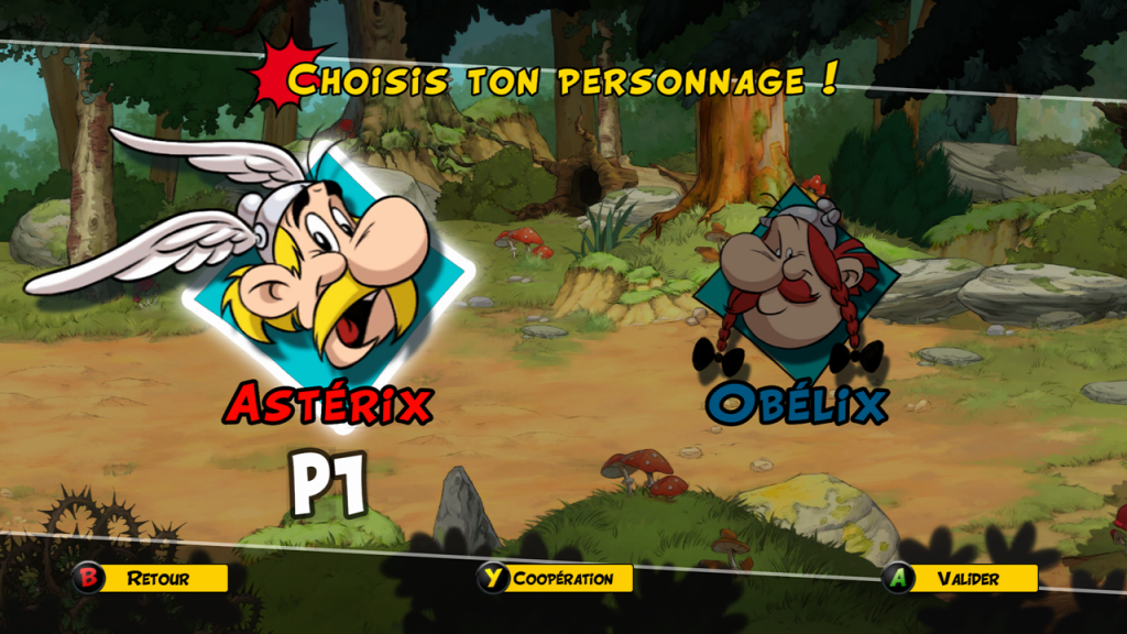 Passé l’introduction, il faudra donc choisir votre personnage. Astérix plus petit et plus agile sera un atout de taille mais l’ami Obélix sera bien utile durant les phases de combat étant certes mois rapide mais bien plus fort que son ami moustachu. De plus, trois modes de difficultés vous seront proposés: Facile, Normal et Difficile ce qui permettra à chacun de se défouler en fonction de son niveau mais aussi aux plus jeunes de découvrir le genre.