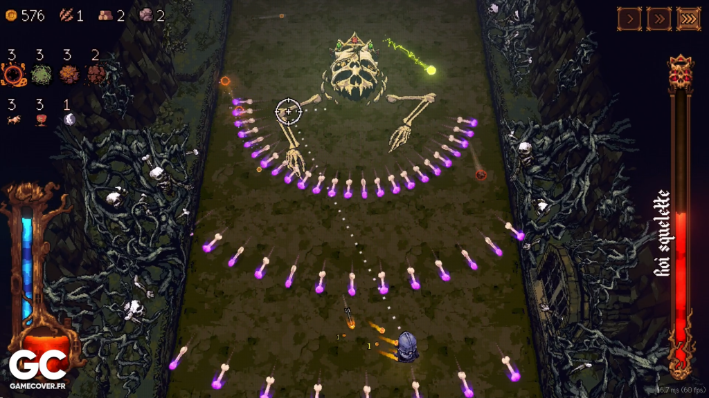 De plus, entre chaque run, vous avez un hub où vous pouvez personnaliser un village, récolter des ressources et obtenir des bonus pour vos prochaines parties. Là encore, tout est présenté comme un casse-briques. Il faut bien organiser son village pour récolter un maximum de ressources à chaque passage, et ça aussi, c’est addictif.