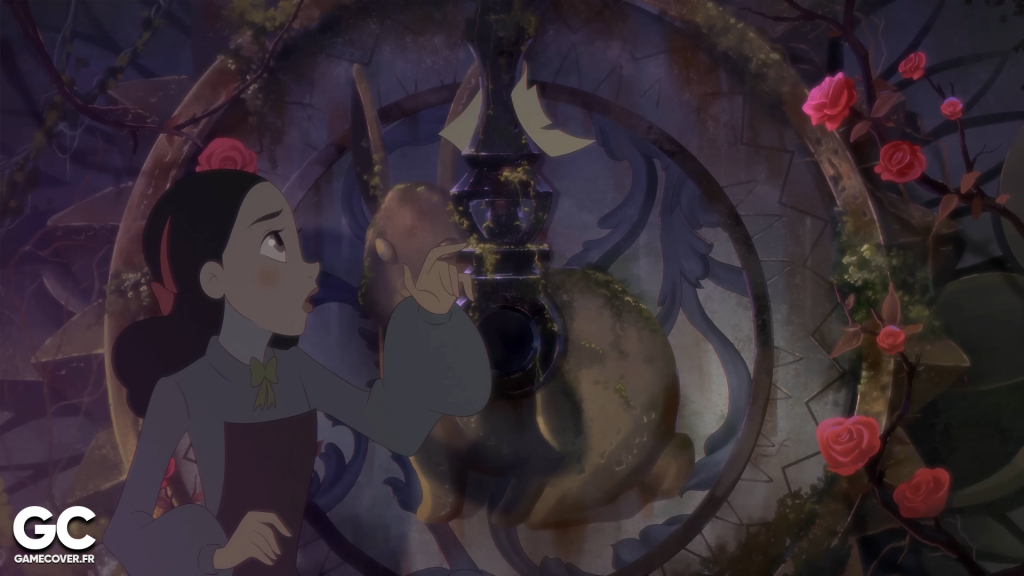 Au fil de l’aventure, Lana découvre le royaume enchanté de Corolla, un univers parallèle rongé par des forces sinistres où rôdent d’étranges créatures (comme un hibou malveillant nommé Velenia, ou des lapins de goudron peu engageants). L’ambiance narrative oscille entre le conte de fées macabre et le récit initiatique. On pense forcément aux classiques de l’animation de Don Bluth ou de Disney mêlés à la noirceur d’un film de Guillermo del Toro. Poétique, car le jeu sait ménager des moments de calme, de contemplation, presque enchanteurs. Sombre, car les thèmes abordés ne sont pas forcément pour les enfants : solitude, disparition, traumatismes enfouis… Le jeu aborde des sujets déjà vus dans le genre horrifique – on peut penser à la saga Silent Hill pour le symbolisme psychologique – sans prétention de tout révolutionner, mais avec suffisamment de sincérité pour que ça fonctionne. Je me suis attaché à Lana et à son histoire, qui bien que classique dans ses ficelles, reste touchante et donne envie de progresser pour découvrir le fin mot de l’intrigue.