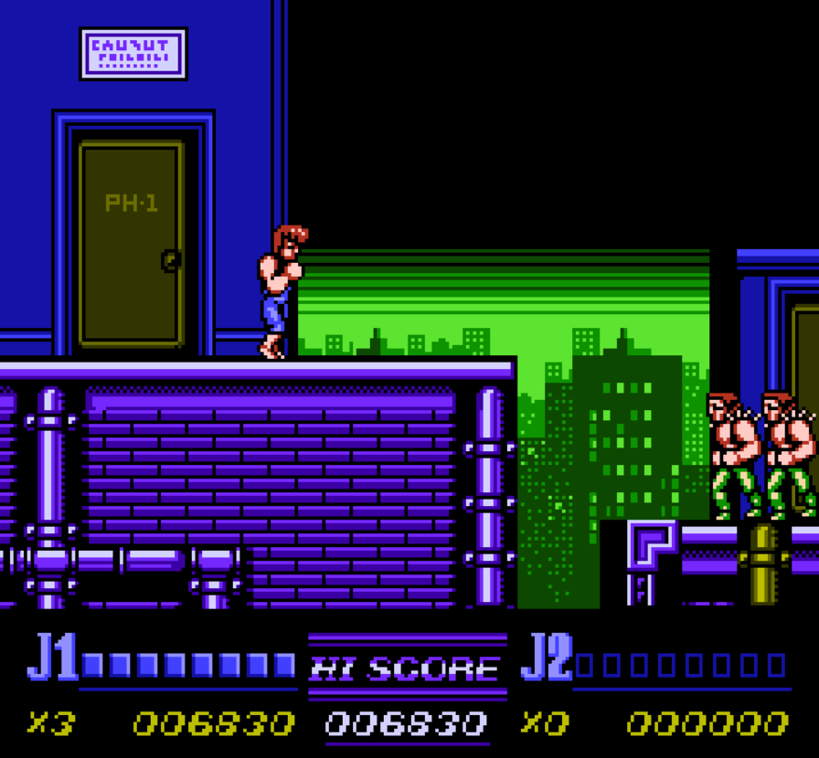 Mais LE point noir du jeu, celui qui m’a fait rouler des yeux tout en étant une sorte d’hommage qu’il aurait mieux valu oublier (coucou Double Dragon II justement) c’est les passages de plateformes. Totalement ratés et surtout plombant le rythme de certains niveaux, c’est juste un puits à décès avec des sauts imprécis et une localisation dans l’espace assez indigeste. Regardez bien votre ombre en sautant, petit conseil…