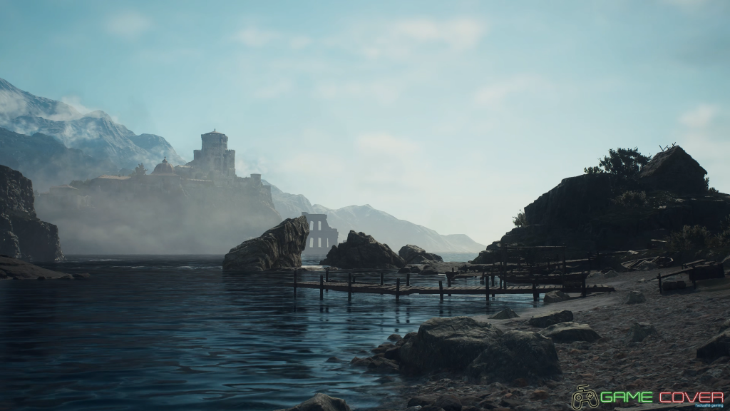 Qui dit RPG en mode ouvert dit exploration, et c’est exactement le moteur du jeu. Derrière ce sentiment de grandeur non dissimulée se cache une centaine d’heures de jeu pour qui voudra explorer chaque recoin, chaque centimètre carré de ce monde aux milles tentations. Attention toutefois puisque derrière ce sentiment de liberté se cache un petit diable répondant au nom de Kraken et infestant toutes les eaux de notre univers. Impossible alors pour vous de vous baigner ou de nager puisque dès votre arrivée dans l’eau les remous se font sentir et la fin vient inéluctablement vous prendre pour peu que votre corps soit suffisamment immergé ; à hauteur de botte vous ne risquez rien mais la tension est palpable et vous obligera à vite sortir de cet enfer naissant. Concernant votre pion par contre la fin est irrémédiable, attention à prendre soin de lui puisque ce dernier saura vous le rendre au centuple. Pour le reste l’heure est à la contemplation, le grain apporté aux environnement vous immerge totalement dans ce monde à la fois vaste et riche aussi en environnements qu’en lieux à découvrir.