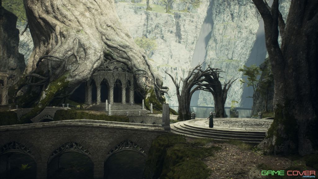 Des reliefs montagneux escarpés en passant par des forêts luxuriantes puis à des déserts à la géométrie dangereusement verticale, on ne peut pas dire que Dragons’s Dogma 2 soit chiche sur sa dimension géographique. Avec un level design particulièrement malin, car certains passages exigus ou certains recoins un peu ombragés d’un relief abimé cachent parfois une caverne ou l’entrée d’un tombeau. Libre à vous de courir partout ou de fouiller le moindre recoin de cette map colossale, qui semble parfois se traverser vite si on reste sur les chemins marqués par les pas d’autres voyageurs, mais qui cache en réalité bien plus que ce qu’elle ne semble proposer initialement. Pensez aussi à regarder les reliefs un peu lézardés, car certains murs ou rochers sont destructibles et masquent des entrées secrètes.