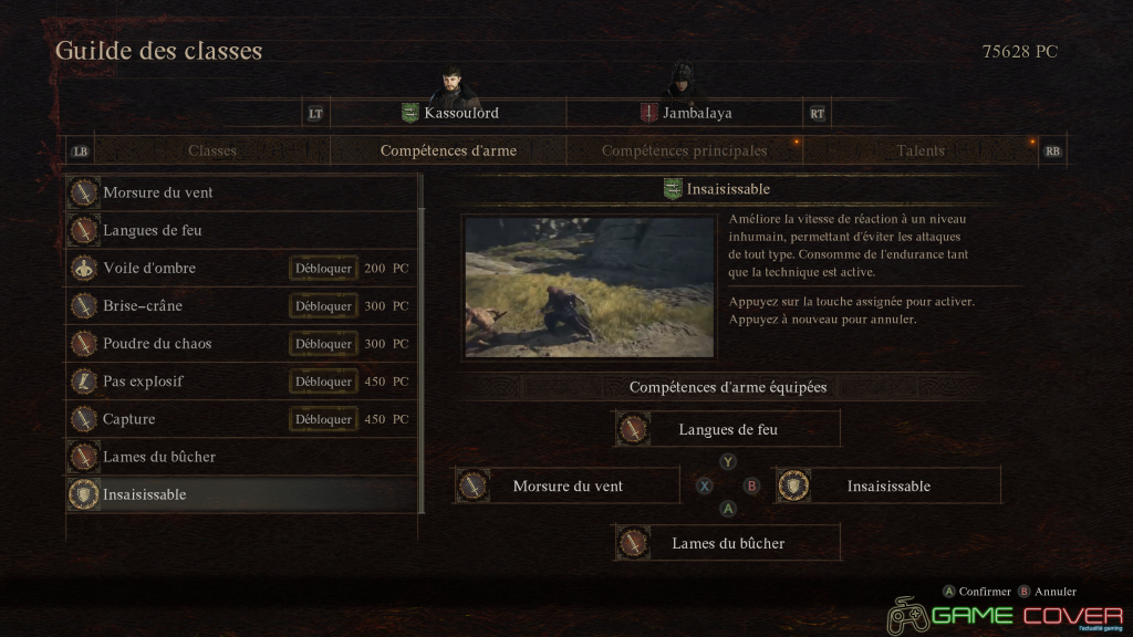 Si les compétences de chacune des classes lui est propre, et ne sera donc pas disponible quand vous en changerez, il n’en est pas de même pour les talents, qui sont des compétences passives héritables de classe en classe. Par exemple, vous débloquerez une compétence d’archer qui vous donnera davantage d’endurance, il sera possible alors de l’équiper si vous prenez la classe de mage.