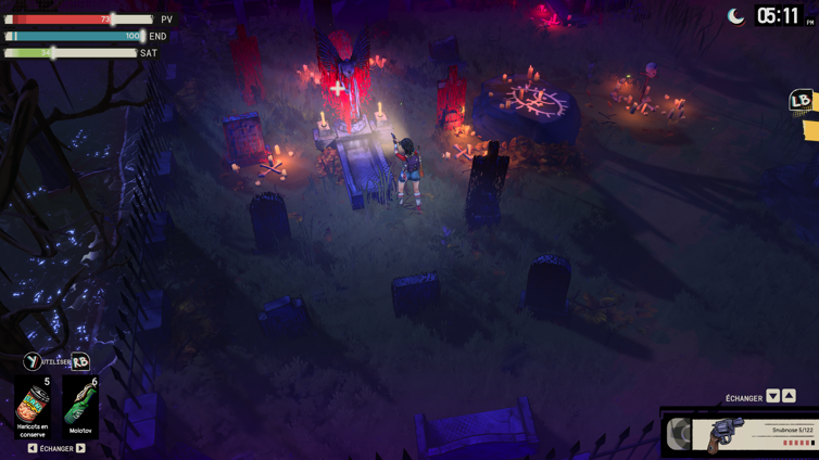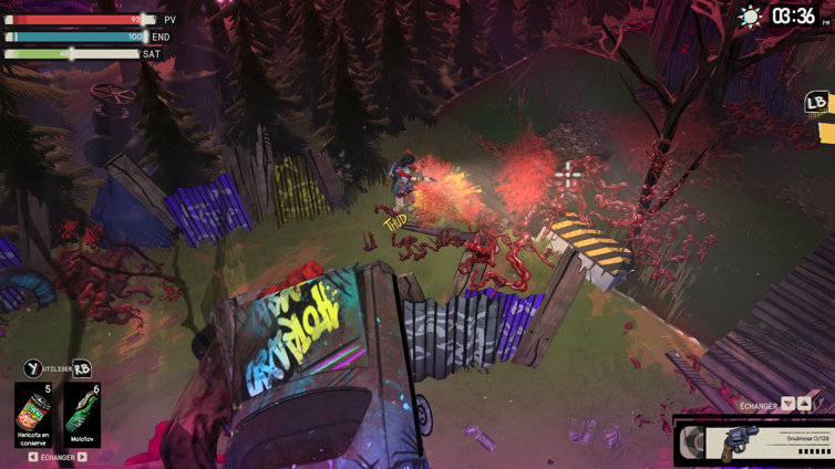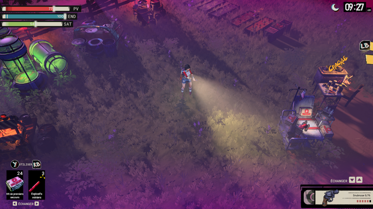 Le côté survie s’effrite en effet au fil du jeu : les matériaux sont trop facilement accessibles sur la carte, le crafting permet de produire munitions et consommables en quantité, et surtout le ranch et ses différents postes à construire brise l’équilibre assez rapidement : on peut alors générer des ressources à la chaîne et transformer l’expérience en massacre généralisé sans trop s’inquiéter.