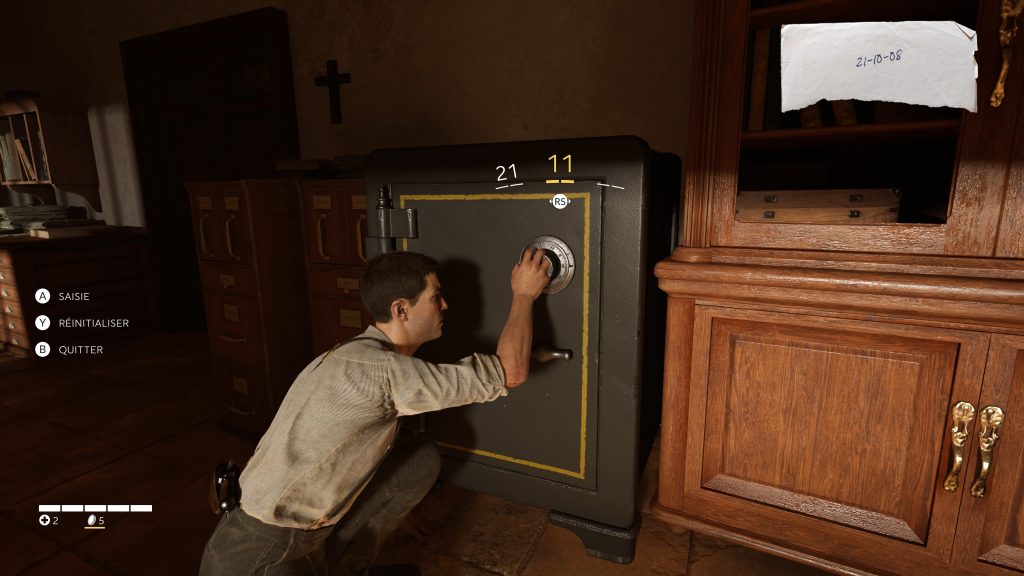 L’infiltration, d’abord, occupe une place non négligeable dans les missions. Malheureusement, c’est sans doute l’aspect le plus faible du jeu. On a affaire à un système très basique, presque daté : Enzo peut se baisser, marcher accroupi lentement, faire du takedown furtif par derrière… et c’est à peu près tout. Pas de gadgets high-tech (évidemment, en 1904 on fait avec un simple couteau et nos baskets), pas de mécanique de déguisement ou de diversion élaborée. On reste dans du “passe dans le dos du garde quand il a le dos tourné”. Pourquoi pas, sauf que dans l’exécution, c’est souvent bancal. J’ai eu droit à des situations un peu folle: par exemple, neutraliser un garde à deux mètres de son collègue sans que l’autre ne remarque rien. Le pathfinding des PNJ pose aussi problème : j’ai observé des gardes faire du surplace contre un mur ou répéter inlassablement le même trajet de ronde de manière très artificielle. Forcément, ça casse un peu l’immersion. Qui dit infiltration dit aussi échecs instantanés : The Old Country adore les séquences “vu = perdu”. Si vous vous faites repérer, game over et retour au dernier checkpoint. Et là, on grimpe vite dans les tours côté agacement, car les checkpoints ne sont pas toujours très généreux… Je peux déjà entendre les puristes crier que “ça a du sens de rater la mission quand on est grillé”. Certes, mais quand c’est mal fichu et qu’on se fait allumer à cause d’une IA aux fraises, bonjour la rage. Au final, je l’avoue, sur certaines missions j’ai fini par faire exprès de me faire repérer pour passer en mode bourrin, tant ces phases d’infiltration m’ennuyaient ou me tapaient sur les nerfs. Ironie du sort, le jeu nous y pousse lui-même : souvent, même en réussissant l’infiltration parfaite, l’affaire dégénère en fusillade scénarisée ensuite… Alors à quoi bon ?