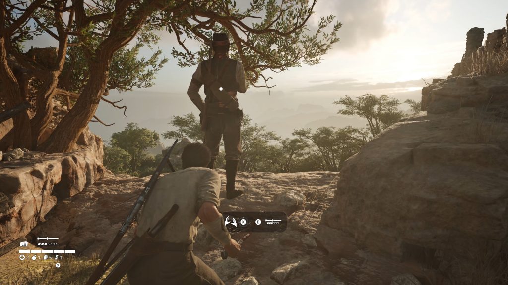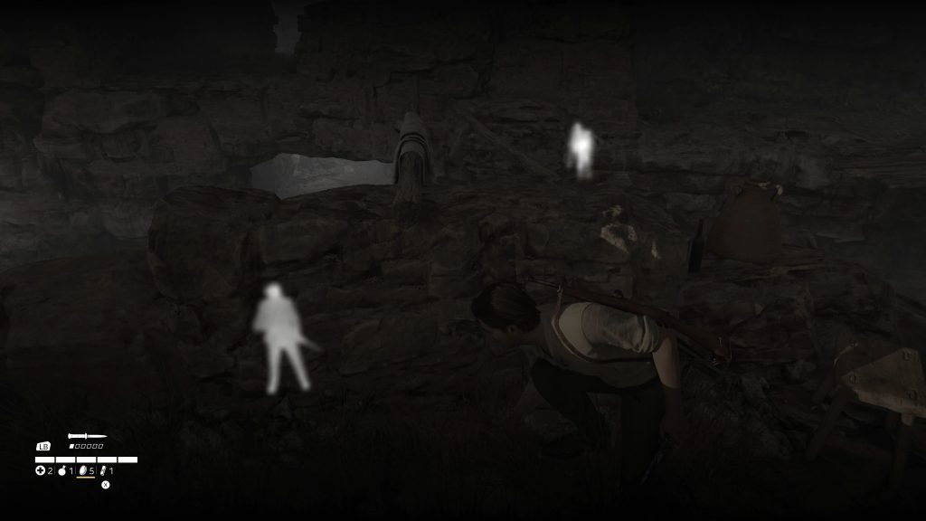 Passons aux choses sérieuses : qu’est-ce qu’on fait dans The Old Country une manette en main ? Eh bien, globalement, on alterne entre des phases d’infiltration, des gunfights, un peu de balade à cheval, et beaucoup de transit d’un point A à un point B en suivant sagement le script. Le gameplay se veut à l’ancienne, pour le meilleur et pour le pire.