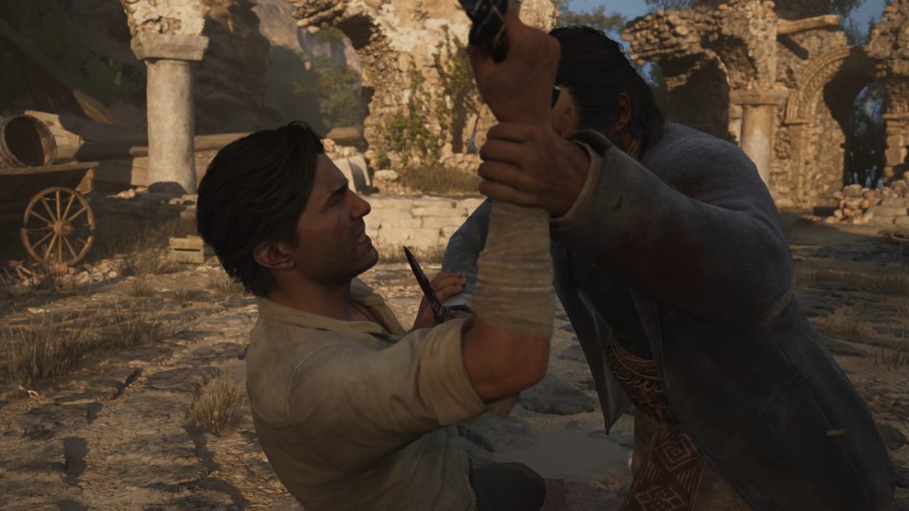 Un élément de gameplay m’a toutefois fait lever un sourcil : les duels au couteau. Oui, vous avez bien lu. À plusieurs reprises, des combats importants se terminent par une petite baston à l’arme blanche en un contre un, avec un mini-système de mêlée (esquiver au bon moment, contre-attaquer, attaquer rapidement ou faire une attaque lourde pour briser la garde adverse). Sur le papier, ça change des fusillades, pourquoi pas. En pratique, ces duels sont très simplistes et un poil ridicules dans leur mise en scène. Imaginez : vous coincez un gros bonnet ennemi, il vous pointe avec son pistolet… et pouf, il le jette par terre pour sortir un couteau et vous défier “à l’ancienne”, pendant que tous ses sbires regardent le spectacle sans intervenir. Le cliché absolu, un brin risible – j’avais l’impression d’être dans un vieux western. Ce n’est pas bien méchant (ces combats restent faciles à gagner et ça change la routine), mais ça m’a fait sourire tant c’est peu crédible dans un contexte qui se veut sérieux !