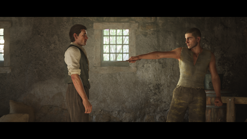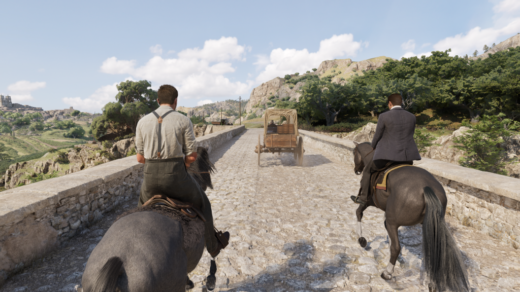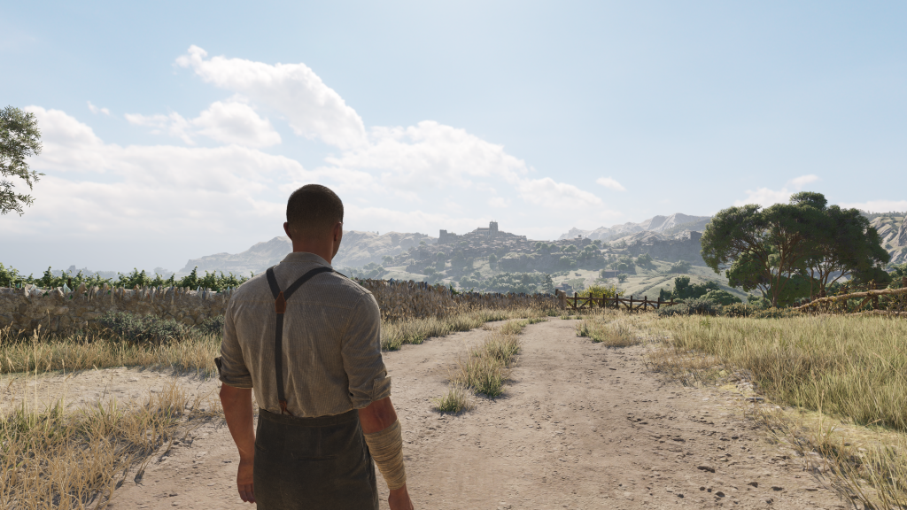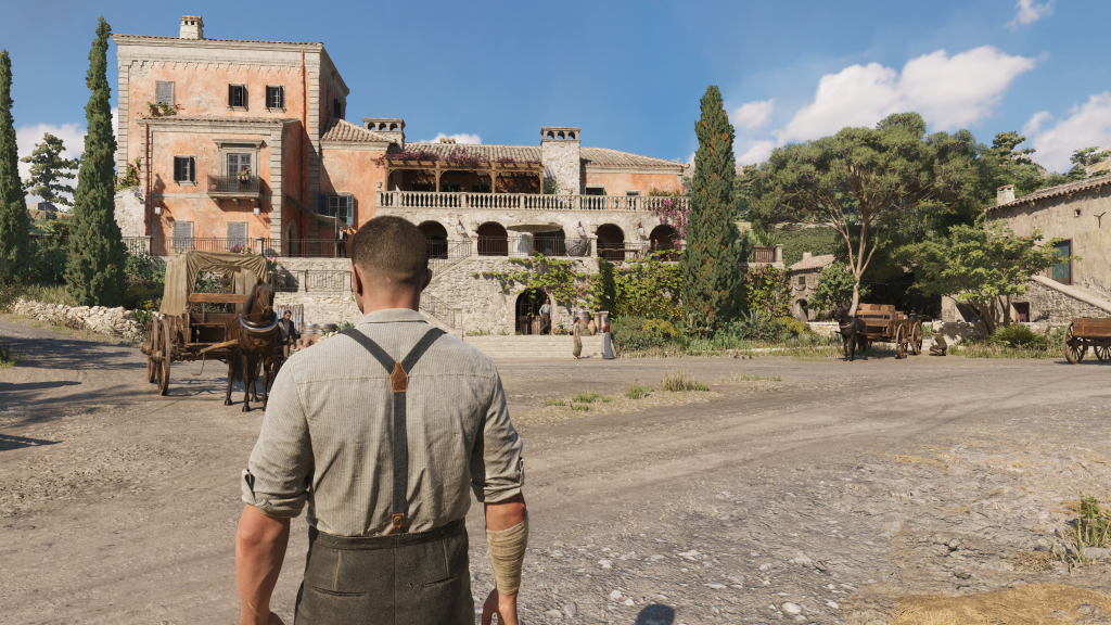 Graphiquement parlant, pourtant, le jeu en jette et on comprend pourquoi il tire sur la bête. Les décors de la Sicile des années 1900 sont sublimes : paysages de campagne baignés de soleil, petites villes aux architectures typiques, intérieurs richement détaillés (la villa du Don, mamma mia 😍)… C’est vraiment un régal pour les yeux. Les modèles des personnages principaux sont très soignés aussi, avec des visages expressifs et des animations faciales correctes. La direction artistique et le souci du détail historique méritent un grand bravo – on sent que c’est là-dessus que les développeurs ont mis le paquet. The Old Country est une belle vitrine visuelle, sans aucun doute. Mais côté technique pur, quelques ombres viennent noircir ce joli tableau (sans mauvais jeu de mots)…