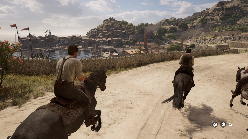 Parlons d’un aspect plus original maintenant : les chevaux. Exit les belles Ford des années 30, ici on voyage parfois à dos de canasson à travers la campagne sicilienne. J’ai vraiment apprécié ces moments à cheval, qui apportent une touche dépaysante. Trottiner entre les oliviers au soleil couchant aux côtés d’Isabella, ça avait un petit goût de Red Dead Redemption version Mafia – pas désagréable du tout. La maniabilité du cheval est correcte, sans plus mais on s’adapte. Le jeu nous gratifie même d’une course de chevaux en pleine ville à un moment, et impossible pour moi de ne pas penser à la mythique course de voitures de Mafia 1. Ici, la course à cheval est scénarisée, assez facile, mais ça m’a fait un clin d’œil nostalgique. J’ai presque entendu la voix du mécanicien de Mafia 1 me dire “Accélère, Tommy !” sauf que là c’était “Hue, Enzo !”. Ce sont des petits moments comme ça qui m’ont fait plaisir, qui donnent du charme au gameplay malgré son classicisme.