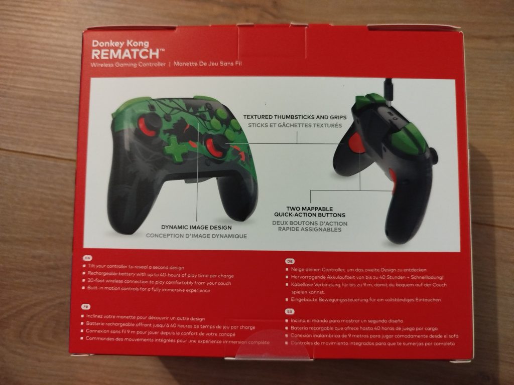 Le packaging, sobre et efficace, montre les différentes fonctionnalités de la manette, et également un petit échantillon du rendu lenticulaire de celle-ci. Pour les joueurs Switch 2, notez que la touche C est absente, pas forcément un mal vu le degré d’utilisation du Gamechat… On trouve à l’arrière du pad deux boutons d’action rapide programmables, toujours pratique pour certains titres, notamment dans la course pour l’accélération et le frein par exemple. La rematch intégre des commandes par détection de mouvement intégrées qui fonctionnent parfaitement comme le montre notre vidéo.