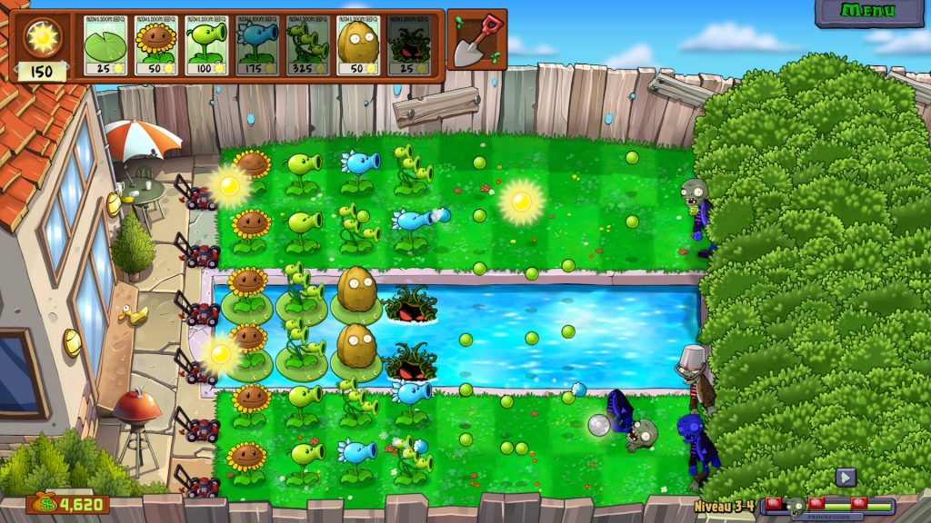Le cœur du jeu reste inchangé : un tower defense où l’on récolte des soleils pour s’acheter des unités, puis on aligne des rangées de plantes pour repousser des vagues de zombies. Les mécaniques sont toujours aussi addictives : récolter du soleil, choisir ses unités, anticiper les vagues : la stratégie varie selon le jour, la nuit, et quelques petites variations de terrain. A vous de bien choisir vos unités chlorophyllesques ! Mais n’ayez crainte : la difficulté est progressive, les premières parties sont une promenade dans le jardin, mais les niveaux avancés exigent une vraie stratégie.