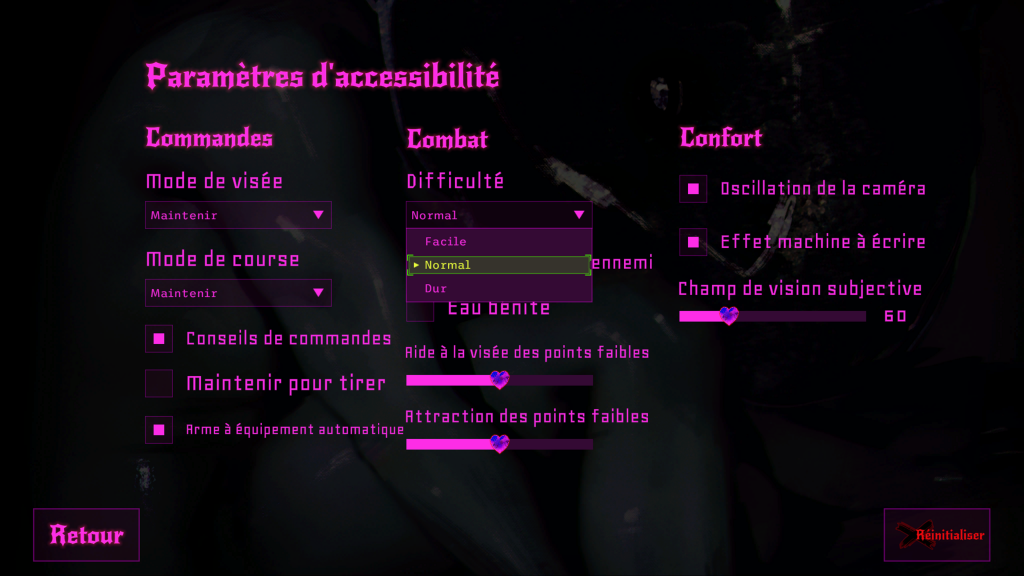 Avant de partir à la découverte de ce titre atypique, il est important de souligner que le titre dispose de sous-titres français. Un bon point contrairement à d’autres titres indés qui ne prennent pas la langue en charge. Pour débuter, trois modes de difficulté sont proposés, nous avons tenté l’expérience en mode normal.