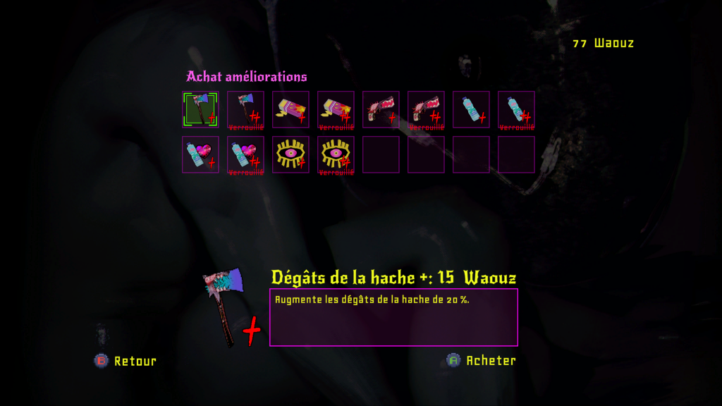 Pour ma première partie, il m’a fallu un peu moins de sept heures pour arriver au boss final (le dernier chapitre était un peu trop long à mon goût). Une durée de vie tout à fait correcte pour un petit jeu indé. Mais c’était sans compter sur sa rejouabilité.