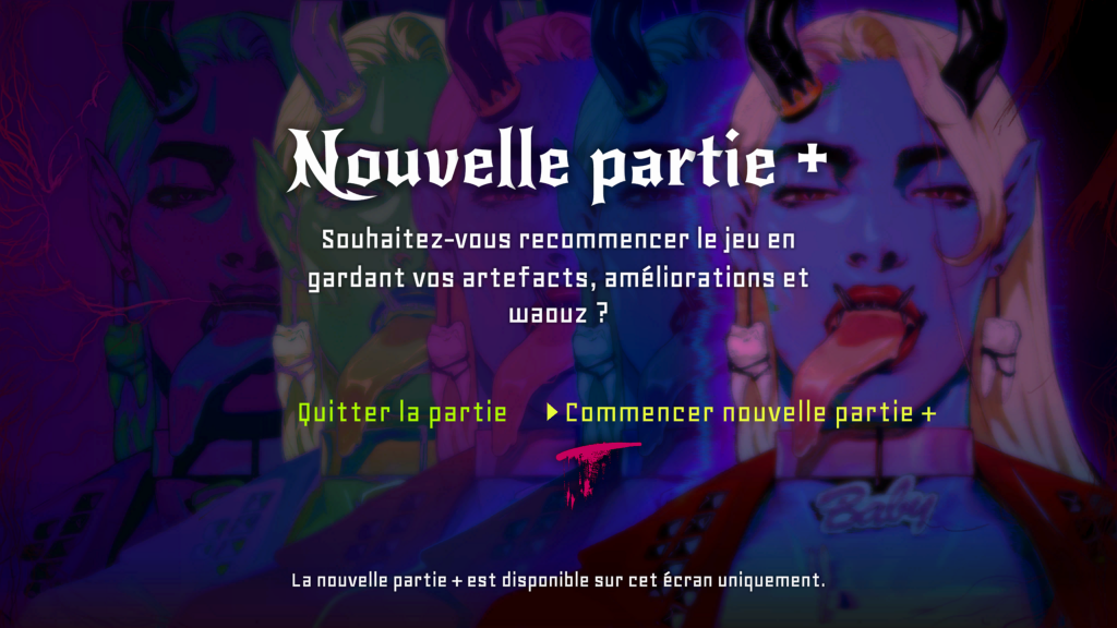 En effet, le jeu comporte quatre fins différentes en fonction de vos différents choix, et il est possible de retenter l’expérience avec une difficulté un cran au dessus et/ou d’améliorer votre score. L’occasion de découvrir les différents aspects du jeu et de décrocher le platine/les 1000g pour les plus valeureux. Le tout via le mode New Game + accessible dès la fin de votre première run.