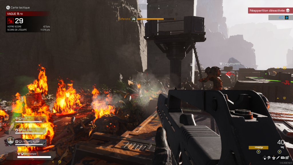 Un des points intéressants du jeu vient de son coop en ligne qui est un joli bordel décérébré, qui mêle construction de fort et shoot de bourrin. N’espérez pas grand chose niveau cohésion tactique, à moins d’être dans une compagnie super habituée au jeu, mais au final, est-ce que ça en vaut l’investissement de temps et de réflexion ? (non.)
