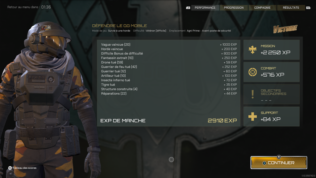 Vous avez une campagne d’une vingtaine de missions pas vraiment fofolles, avec un artwork de Casper Van Dien digne d’un jeu mobile mais qui a le mérite d’être doublé par l’acteur. L’ergonomie globale du titre est simpliste mais perrmet d’accéder facilement aux différents modes, que ce soit la campagne solo justement, le mode hors ligne qui permet de jouer de 4 à 16 joueurs. Le front galactique est une sorte de pass saisonnier permettant de débloquer des skins, décalcomanies ou autres goodies souvent esthétiques.