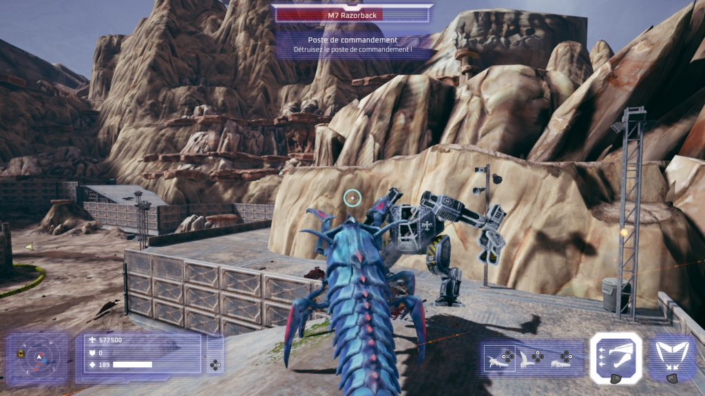 On incarne ici un gros insecte métamorphe chargé défoncer tout ce qui bouge mais aussi capable d’appeler des renforts près des nids présents sur les maps dédiées à ces niveaux. Votre insecte peut changer de forme pour être plus efficace en attaque, défense ou mobilité avec par exemple la capacité de voler. Sur le papier, cela ressemble à un mélange de stratégie légère et de gestion organique. Dans les faits, la campagne se résume souvent à défoncer des vagues successives d’unités en détruisant les bâtiments ennemis, avec un joli bordel ambiant.