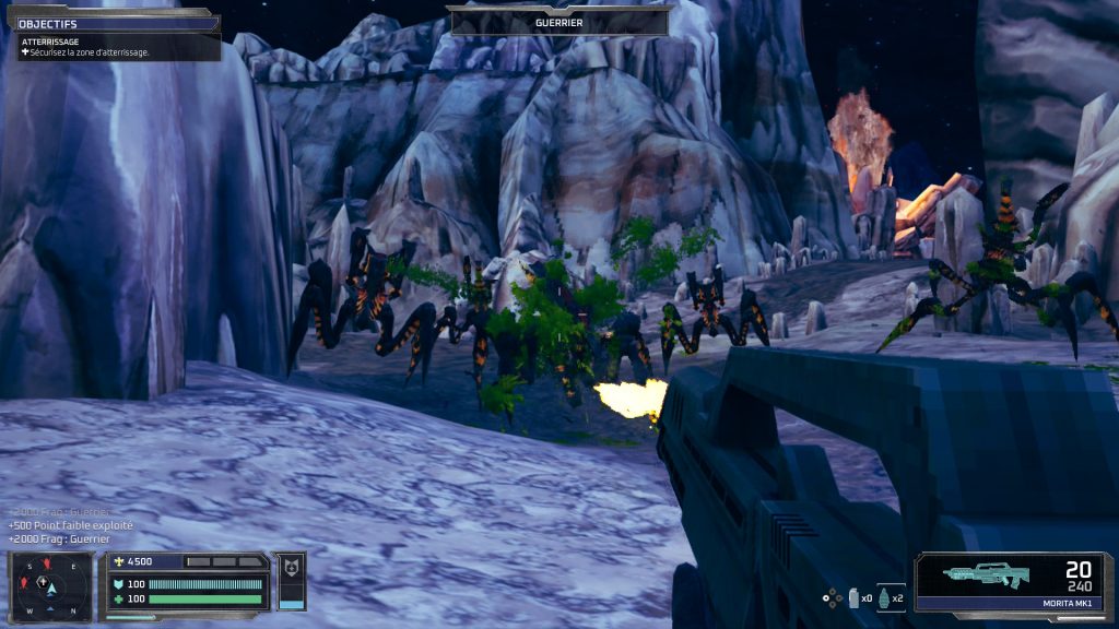 L’IA alliée qui vous accompagne n’a pas inventé l’eau chaude, l’idée c’est de pouvoir recruter des petites escouades en les sélectionnant quand vous êtes proches d’eux, avec 4 troufions qui peuvent vous suivre mais ils sont plus souvent de la chair à canon que des vrais équipiers efficaces. Idem pour les insectes mais eux c’est déjà plus pardonnable.
