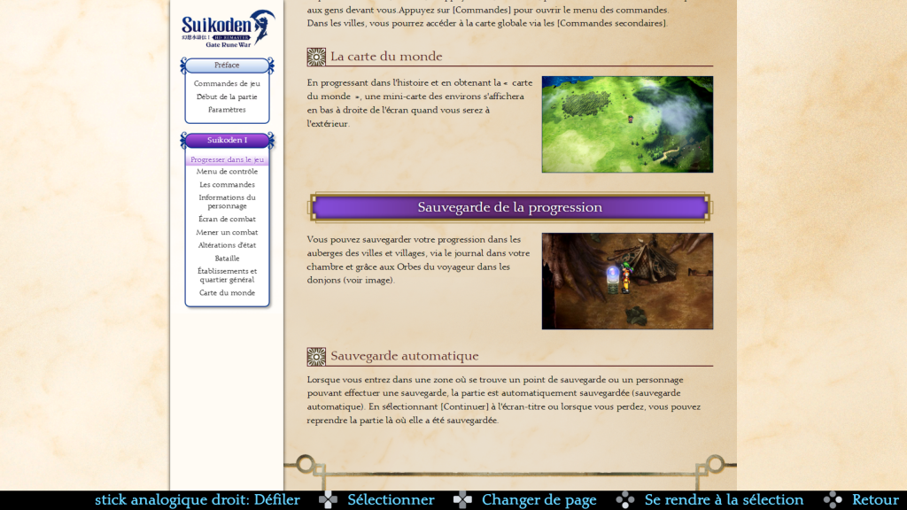 Pour chaque jeu, vous aurez accès à un manuel qui vous expliquera les ficelles du gameplay, des basiques aux fonctions plus particulières, le tout en couleurs et illustré, on apprécie !