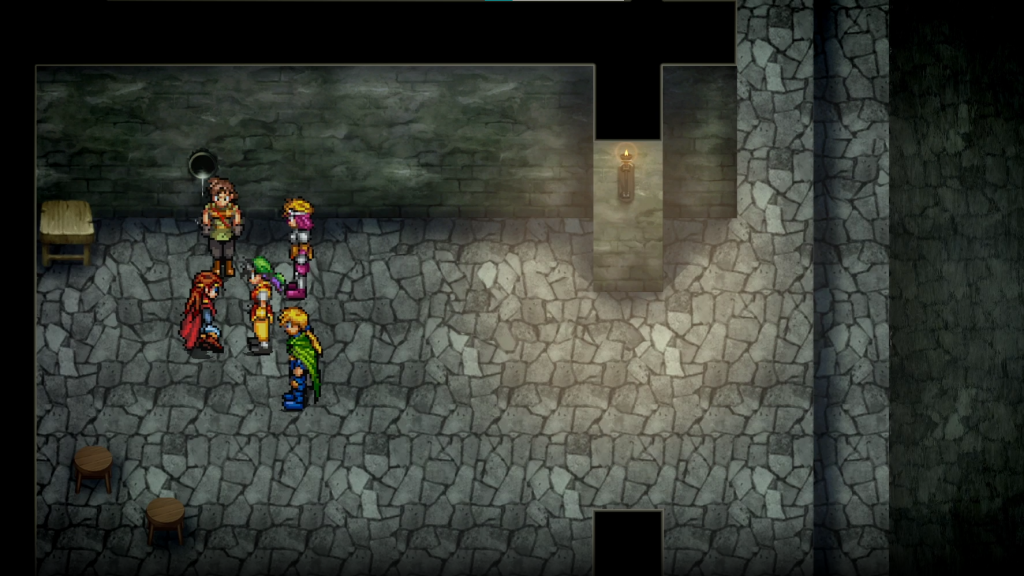 On retrouve donc les deux premiers épisodes de Suikoden dans cette compilation, qui a été revue et corrigée en termes techniques, mais pas sur le fond (heureusement) On se retrouve ainsi avec des décors en haute définition, et des personnages en pixel-art, un parti-pris pouvant être clivant car le rendu des décors est vraiment net, et jure avec le rendu en pixel des personnages. Gênant pour certains et pas pour d’autres, on vous laissera juge mais on aurait apprécié un traitement soit entièrement redessiné soit tout en pixel pour pas avoir le cul entre deux chaises.